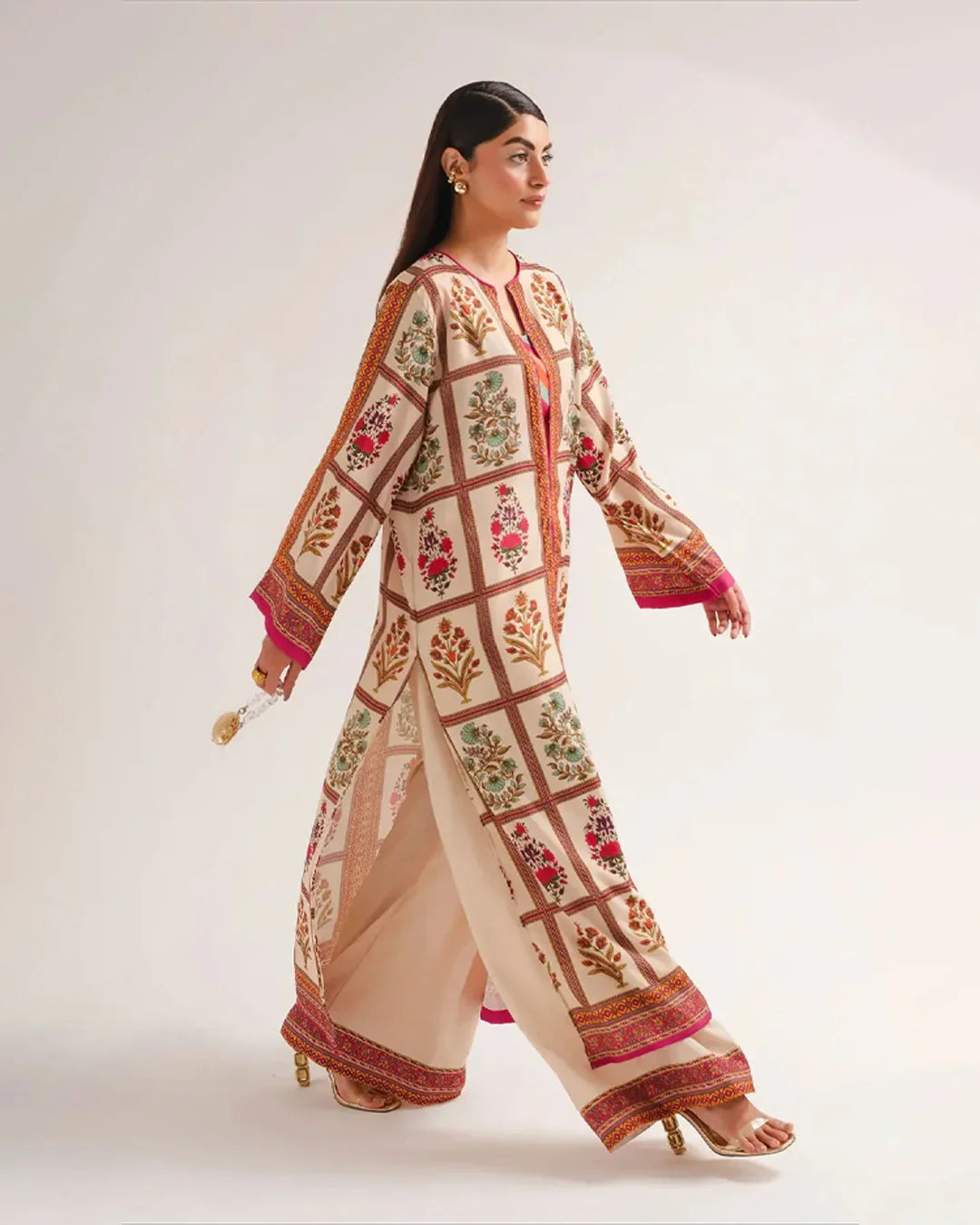 This 2 piece printed-colored co-ord set features luxurious and comfortable fabric and impeccable cuts given to every detail of the article, offering versatility and sophistication for any occasion.