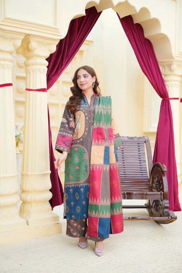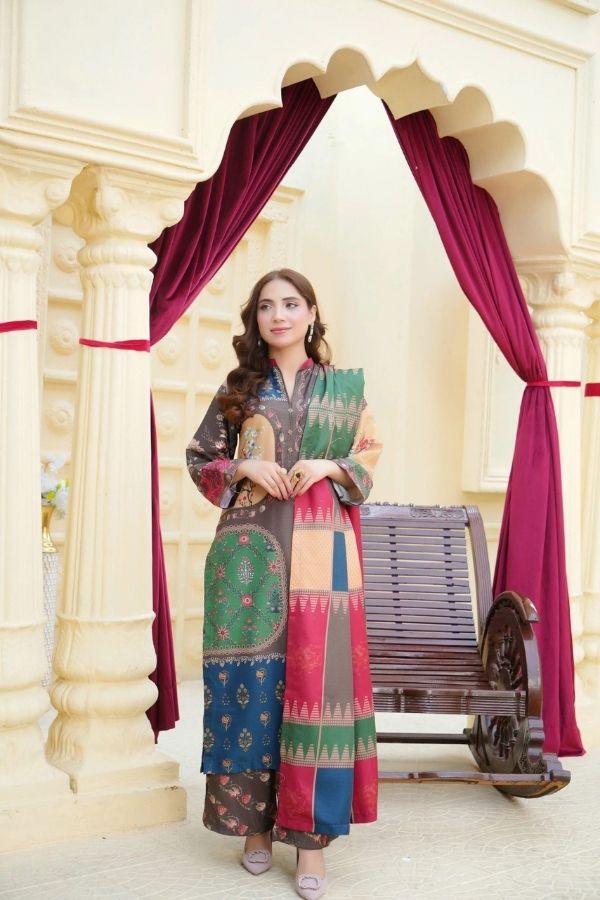 This 3 piece printed-colored co-ord set features luxurious and comfortable fabric and impeccable cuts given to every detail of the article, offering versatility and sophistication for any occasion.